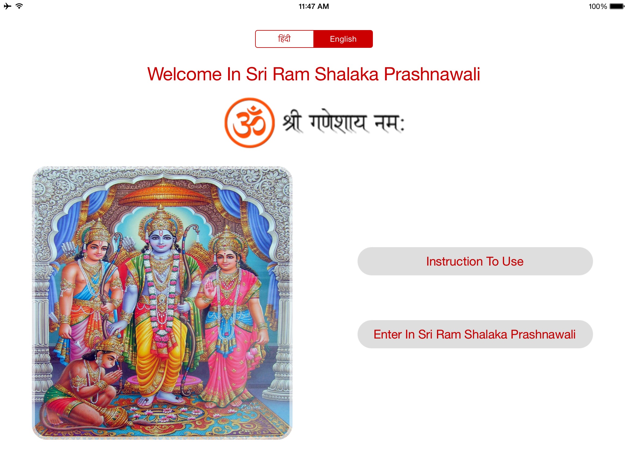 - Sit in quite comfortable place, open the app, close your eyes and remember Lord Sri Ram or any God and Guru based on your faith and believe.