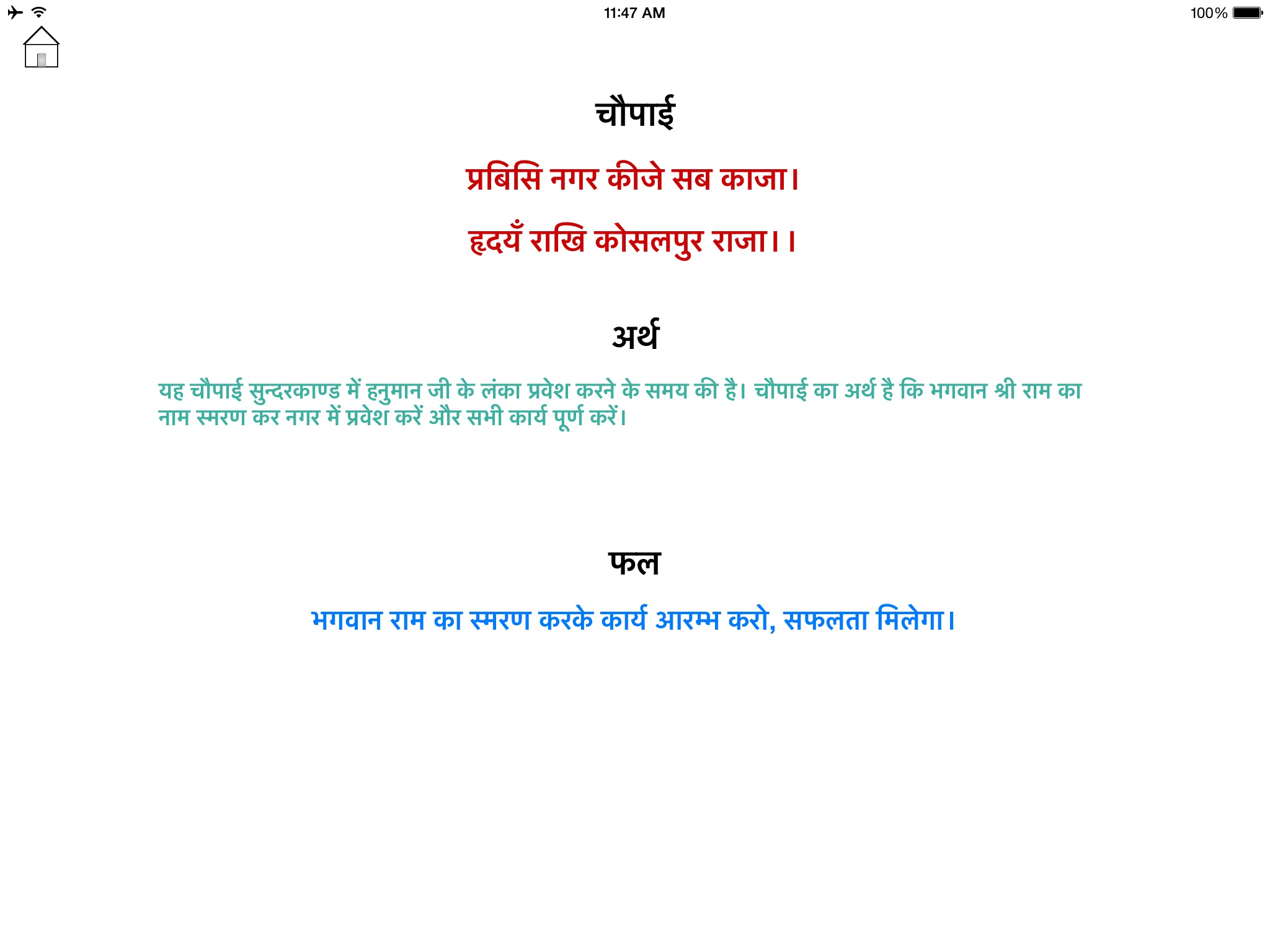 The answer to the question being asked is in the form of chaupai. The chaupai is formed by the letters (akshars) from every ninth square starting from the square where you touched and joined in a sequence.