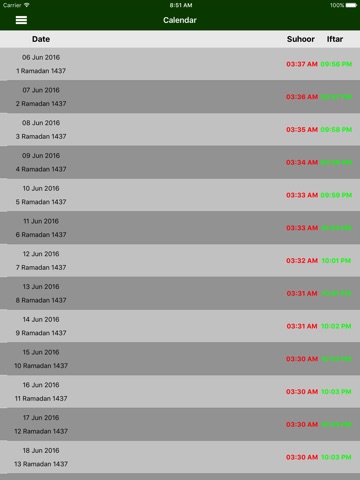 Get the exact schedules of Suhoor and Iftar.