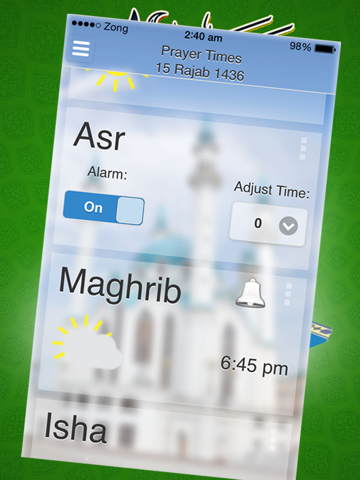 -Adhan (Arabic: أَذَان) audio for Fajr and other prayers.