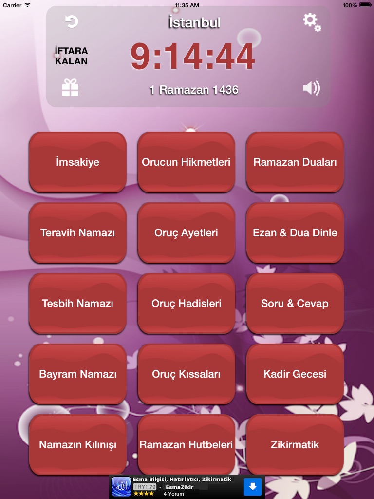 - Uygulamaya girişte türkçe sesli olarak iftara ve sahura kalan süre bildirimi.