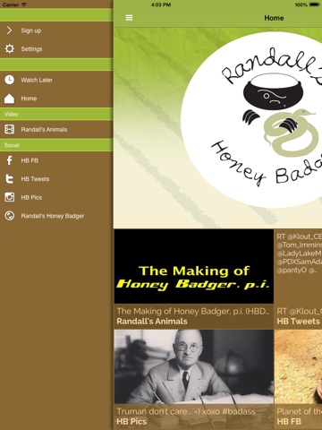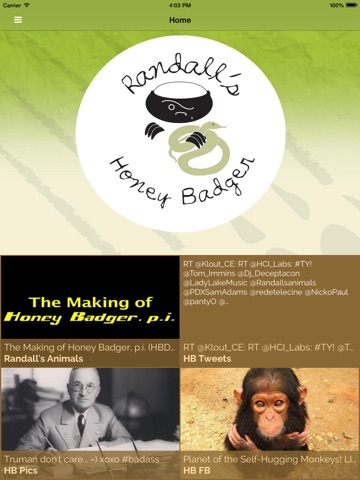Love honey badger? Love wildlife & comedy? Then dont be stupid, get Randalls Honey Badger app, and keep up to date with all of this sassy edutainers videos and social media! With well over 67 million video views, Randalls crazy, nastyass honey badger, has dug its way into our hearts. Randall is a wildlife and pop culture narrator, with a twist. Show your love and get nasty with this fabtastic app: featuring videos, social media feeds, 100% interaction and more! Its everything Randall/Honey Badger, under one roof!