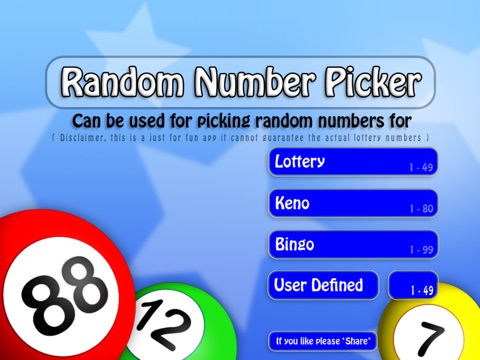 It is great for lotto, lottery, keno and bingo numbers as well as any other game that may require a random set of numbers Who doesnt want a free app for bingo calling, or when ever you need to pick some numbers for the lottery.