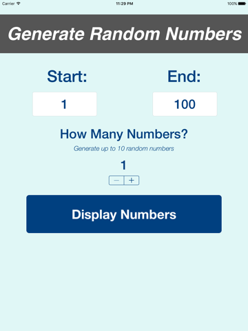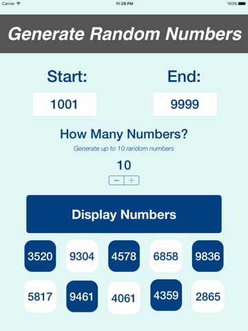 A quick and convenient way to generate random numbers. The application can generate up to 10 random numbers in the specified range of 1-9999. Simply set the range, specify how many numbers you want and tap “Display Numbers” button.