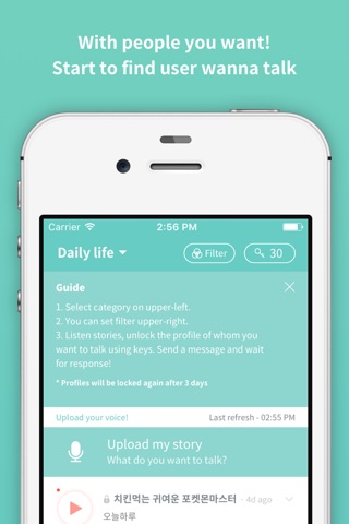 - Daily, Random words, Emotional, Music, Hobby, Food, Counseling, Relationship, Gaming, Traveling, Secret