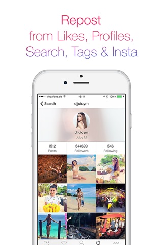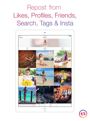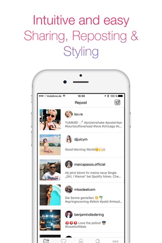 - Repost photos & videos from your Instagram feed or likes