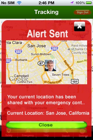 App puts a Panic Button on your family members cell phone. Allows to them to send quick alert to emergency contacts listed in their profile.