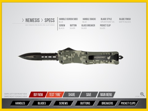 Design, save, share and purchase your own Custom RCT-1 Raven OTF (out the front) knife with this incredible app from RavenCrest Tactical.