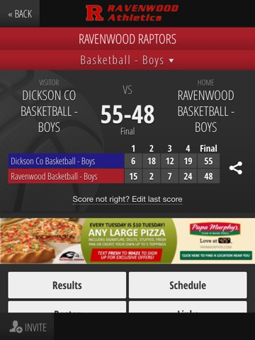 Ravenwood Athletics is a LIVE scoring app for all Ravenwood sports teams, powered by BallFrog. Our app allows Ravenwood fans to customize their experience and receive push notifications from the teams they choose.