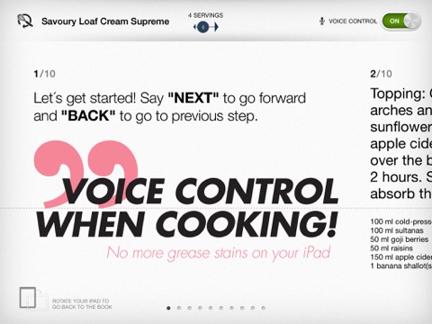 → Voice control while you’re cooking, no stains on the screen (iPad only).