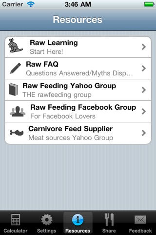 The Calculator makes food calculations and figuring out correct portions a snap; the Resources section provides a handy on-the-go reference for prey model raw diet information and more!