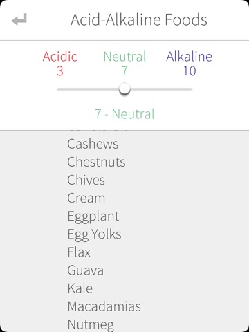 I really wish someone would make an app that has the correct pH for most foods. This one is slightly better—really slightly—than any other app I’ve been able to locate in the app store for ease in determining the pH of many foods. For example, this app lists almonds as acidic, when, almonds are alkaline (and are not really nuts but related to the fruit family). The app also has pages and pages of reference material that it really doesn’t need because once it is read, it isn’t needed anymore. Too bad. Wish there was a better app out there.