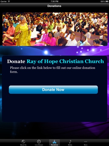 This is the official Ray of Hope Christian Church iPhone/iPad/iPod Touch Application. Download this FREE App today to connect with Ray of Hope Christian Church and experience our messages. Watch our services LIVE, listen to music and more. The Ray of Hope Christian Church App was created by The Church Online.