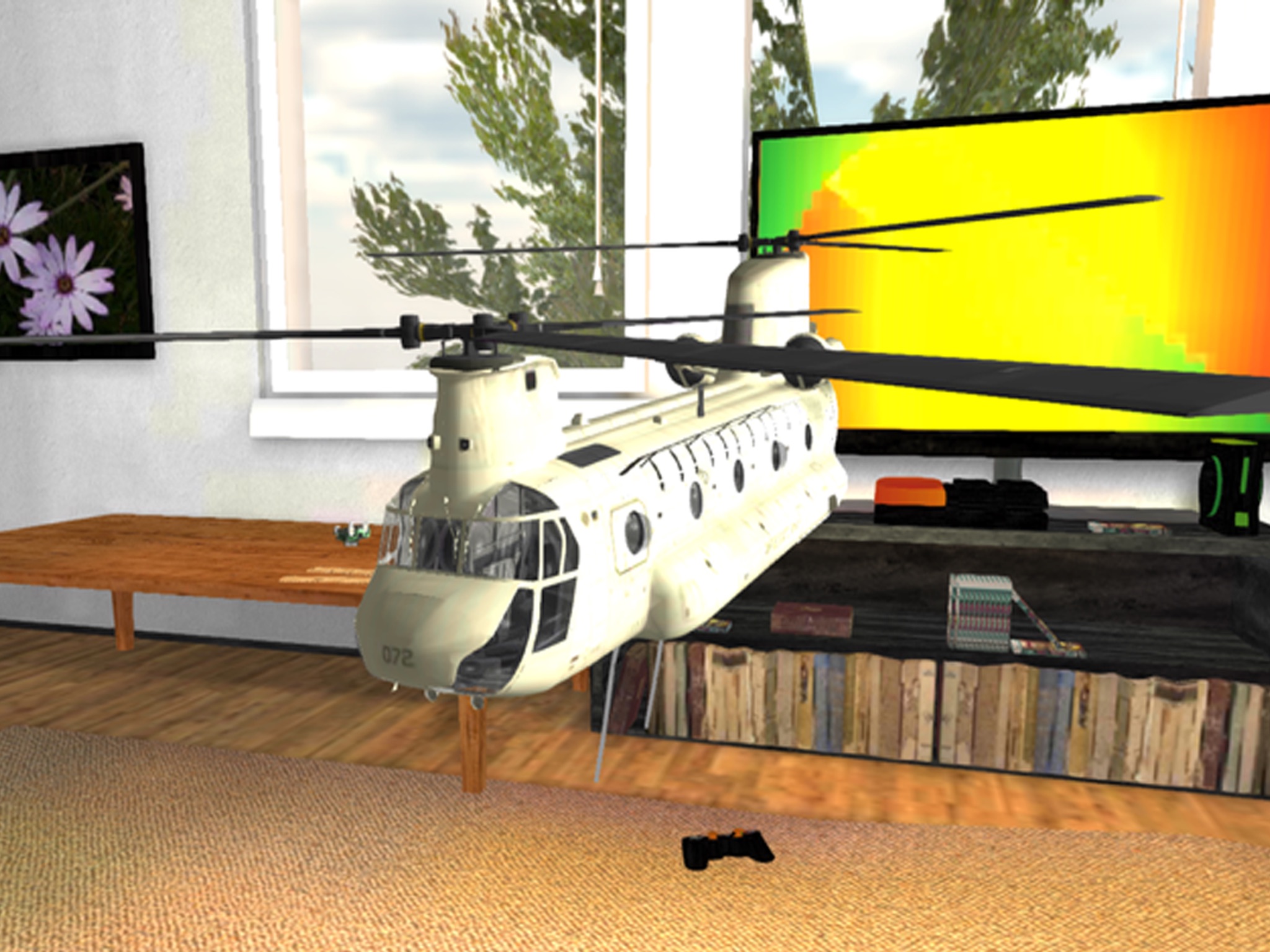 Helicopter game, RC Helicopter Flight Simulator 3D, is a new a exciting helicopter flying sim game. Take control of a super realistic RC helicopter and go on flying adventures in your house ! ALL 20 LEVELS UNLOCKED AND SANDBOX MODE !