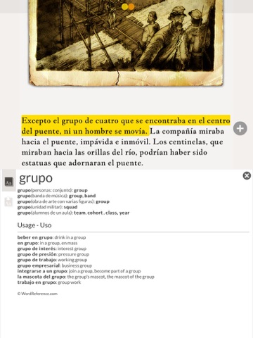 The tale, ‘Un suceso en Owl Creek Bridge’ is in Dubbuk format. You know: if you don’t understand a sentence, touch it and get the Spanish integrated translation.