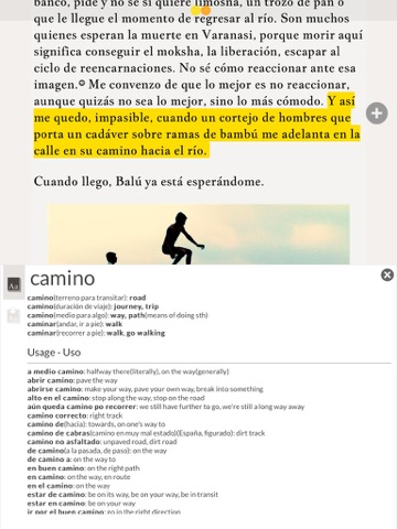 This chronicle, ‘Varanasi, mujer y cadáver’ is in Dubbuk format. You know: if you don’t understand a sentence, touch it and get the Spanish integrated translation.