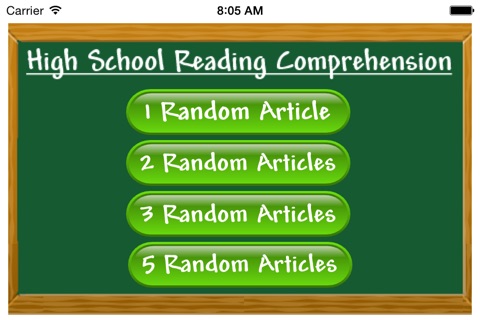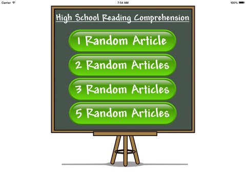 The app lets you randomly select 1, 2, 3, or 5 articles. The random articles are then displayed page after page together with multiple-choice reading comprehension questions. As you answer the questions, the app displays your score and lets you see your mistakes. You can practice at your own pace and time, and see your score going up from one practice to the next.