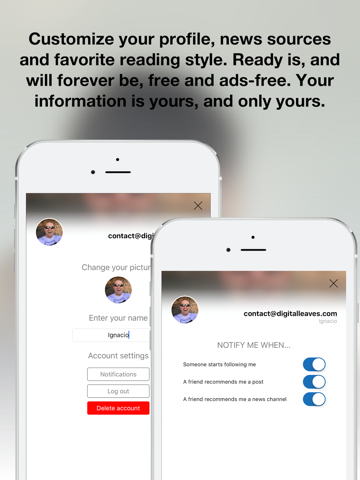 Ready is now social too! Start following people and ask your friends to follow you, you will be able to recommend them posts, news sources or share your interests with them.