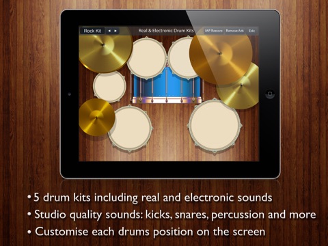 Easily play amazing beats, from a great range of rock and electronic drum kits. The multitouch screen allows you tap out amazing beats with your fingers and enables you to play up to 10 different percussion sounds at one time.