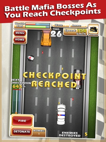 - Race to each checkpoint as you collect the fuel your unit is leaving on the highway. Thanks to them you can keep chasing down and destroying the bad guys.