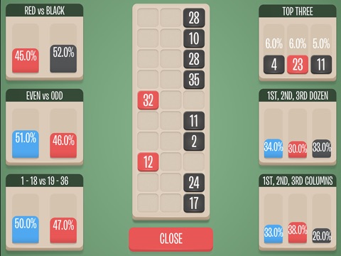 I dont know why this game is so far down the list on the App Store, but it is hands down the best roulette app I have played so far! It looks good, sounds good, has great features (I especially like the statistics on this one), and has a great atmosphere that makes it very addictive. It just feels natural. Great job!
