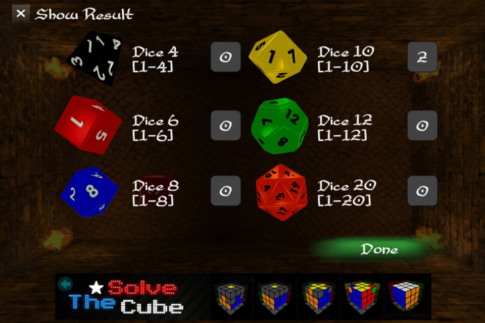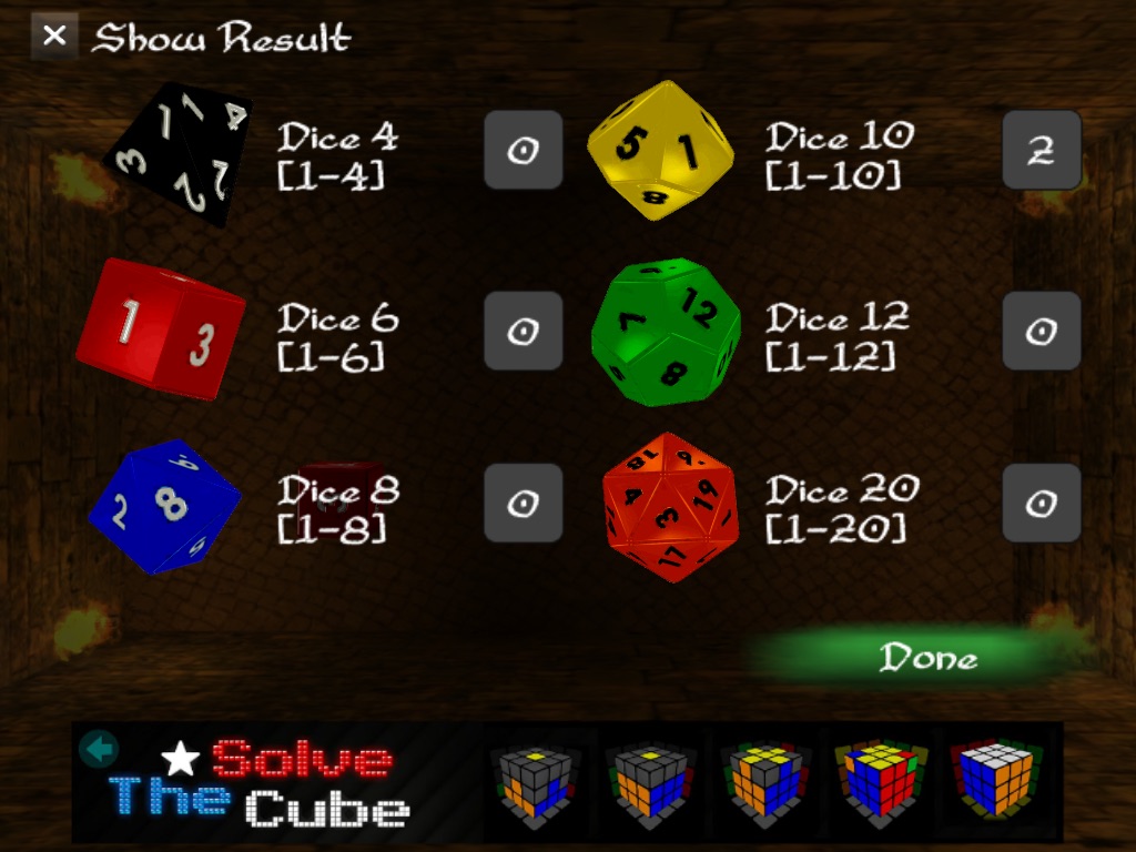 Now with d4, d6, d8, d10, d12 and d20 dice available.