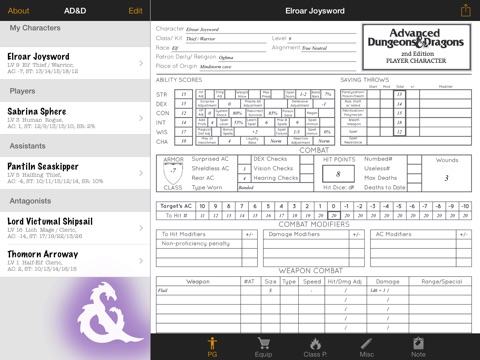 With this application you can create any number of character record sheets for AD&D edition, manage them, and save/import reusable data templates to/from your Dropbox account!
