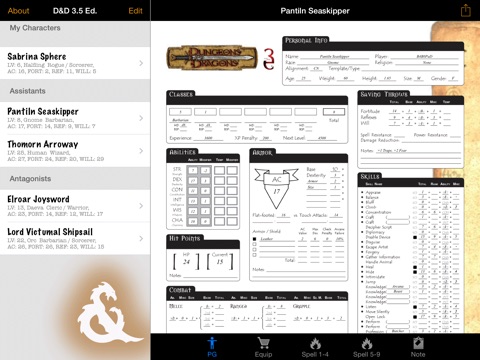 This app is very well put together and is easy to use however the app needs to have prestige classes added to the lists, the app also need a section for cleric domains and wizard and sorcerer familiers plus a second and maybe a third sheet for noted. With these changes this app would get a full set of 5 stars