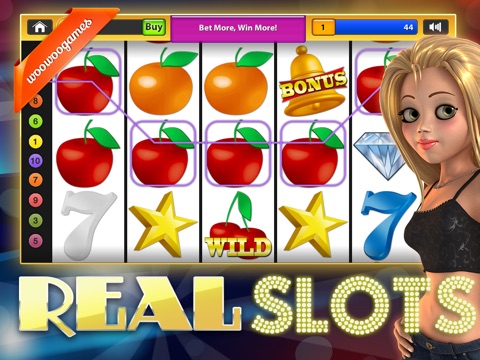 Real Slots is an amazing vegas style 5 reel slots game which is easy to play with huge bonus features and more. Enjoy the excitement of up to 30 win lines with big win and play bonuses.