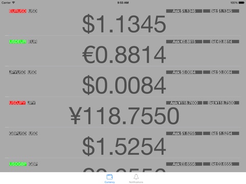 This application provides an unprecedented currency market overview. A clean design with an easy to use interface, rocket fast response times and integrated notifications makes it second to none.