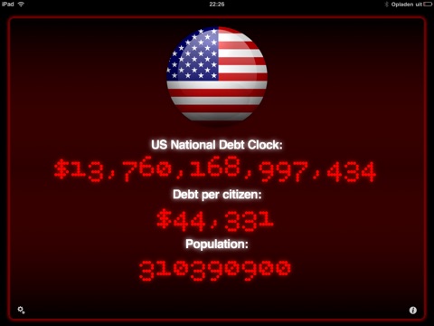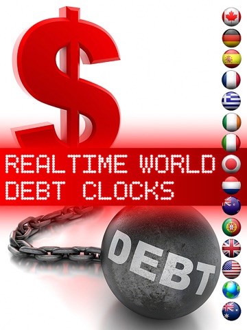 1 World Debt + 14 National Debt Clocks including:United States, Canada, United Kingdom, France, Germany, Netherlands, Ireland, Greece , Italy, Spain, Portugal, Japan, Australia, New Zealand.