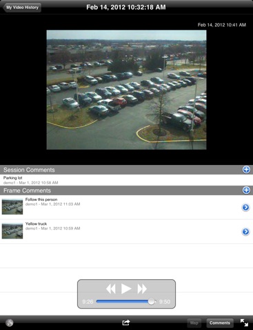 · The Viewer Configuration Panel can be pulled down and icons can be selected to decide how the user wishes to view their video with comments or maps.
