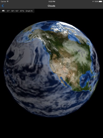 Real-Time Wx presents 3D visualizations of up to date nationwide and worldwide weather data from Nasa and the National Weather Service on an interactive virtual globe.