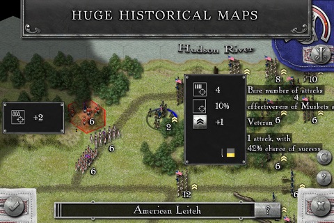 You will face the same tactical challenges as generals such as George Washington and William Howe, with missions of varying size and objectives, and 24 different combat units. As with previous strategy games from Hunted Cow, every effort has been made to capture the look and feel of the warfare methods, equipment and uniform of the day, and this title is no exception. In these battles players will also find the detailed and accurate maps, orders of battle, and named regiments from the well-loved Decision Games board game.