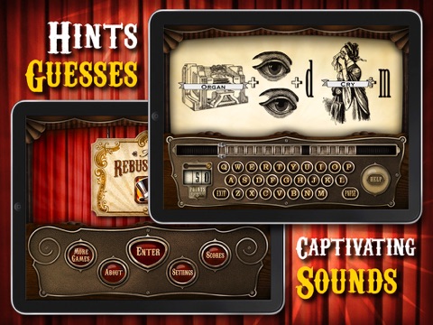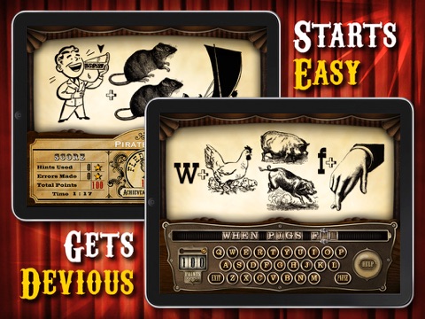 Even if you’ve never heard of a rebus puzzle before, you’ll know the concept when you see it. The aim is to guess words represented by pictures. Many of you probably know rebus puzzles from beer bottle tops or from the TV shows Concentration and Catchphrase but youve never seen them like this before. Youll be taken away to an old style Vaudevillian era with animated velvety curtains, antique Underwood typewriter keys, vintage sound effects, an original music score, retina graphics, and of course great puzzles. As iPad Insight kindly put it "The Rebus Show is a fantastic game that brings rebuses to the iPad — not necessarily for the first time, but certainly for the best time." Give it a try.