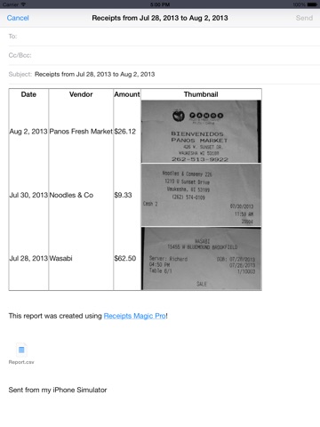 -Reports can contain thumbnails for multiple receipts or full images for single receipts