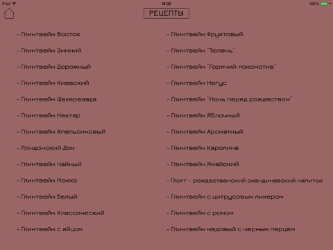 О том, как правильно приготовить глинтвейн в домашних условиях Вы узнаете из приложения "Рецепты глинтвейна", в котором представлены следующие рецепты: