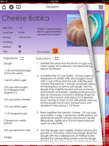 • Perform keyword searches of your recipes, ingredients, and instructions