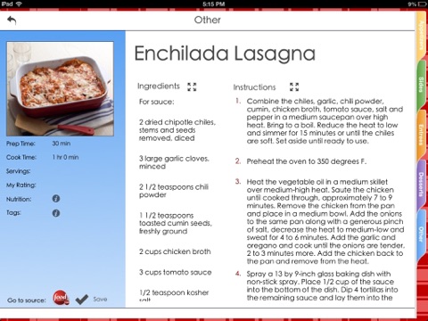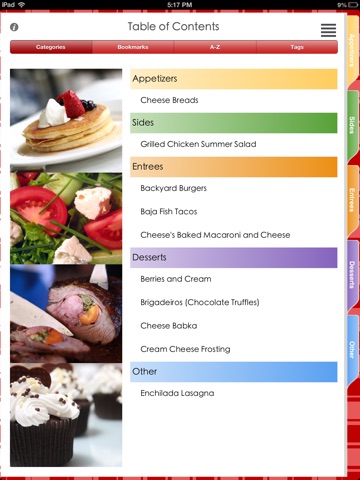 • Color coded tabs allow you to easily visualize and organize recipes into five categories. The app comes with five preloaded categories that you can easily personalize