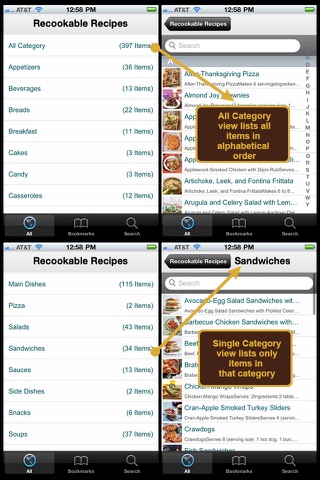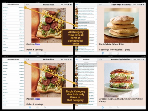 * 2-Level Category Views with THUMBNAIL preview of each recipe