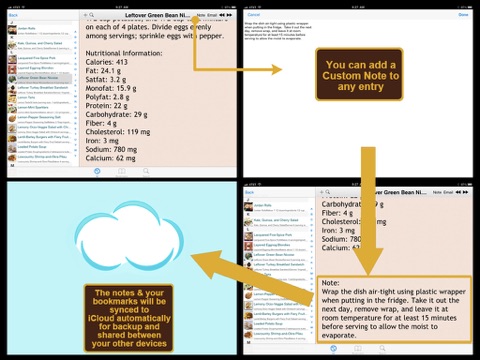 Recookable Recipes is an application containing around 400 detailed cooking recipes that are recookable. That is, if you cannot finish them in one time, you can store them and recook them afterwards. The recipes are grouped into different categories for easier reference (appetizers, beverages, breads, breakfast, cakes, candy, pasta, desserts, pizza, etc.). For each recipe included in this App, a photo, an ingredient list, a step by step cooking direction, and a detailed nutritional table is provided.