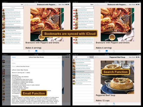 * Ability to BOOKMARK selected recipes for easier reference