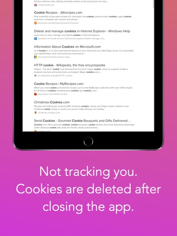 It stores no browsing history + blocks pop-ups and new windows + denies access to some ads + auto deletes cookies + hides content while not running the app + doesnt track you + does not implement 3rd party libraries