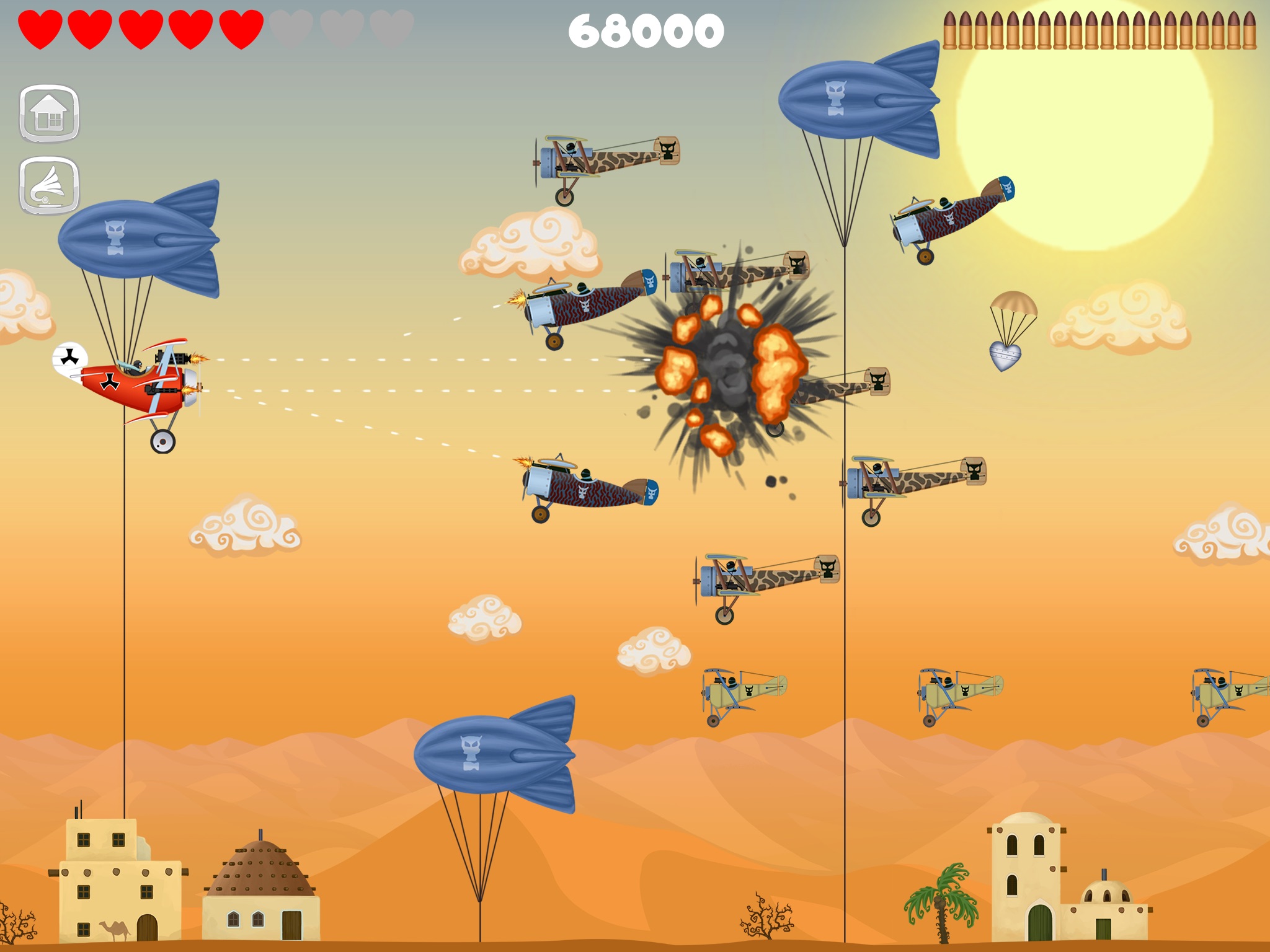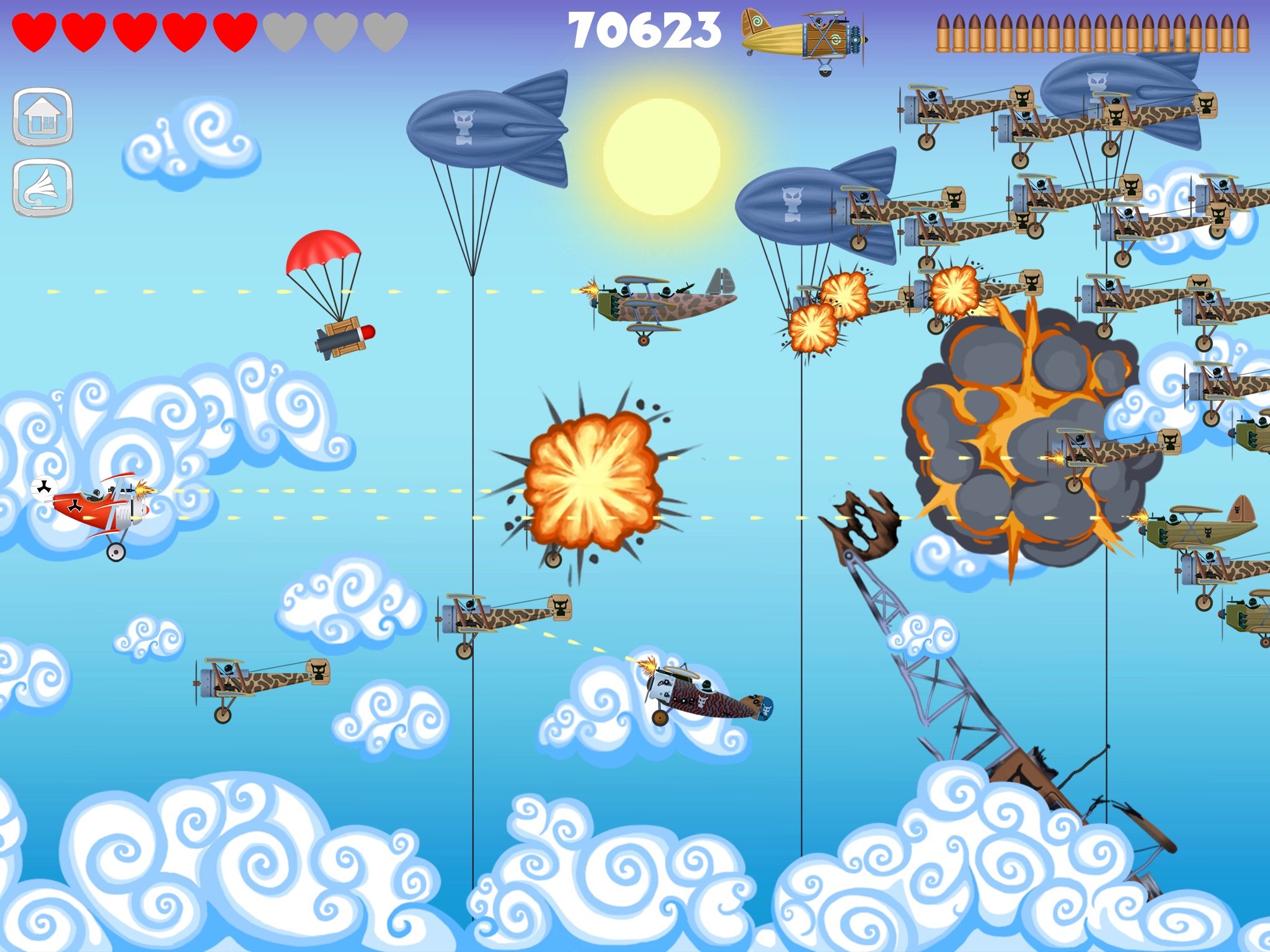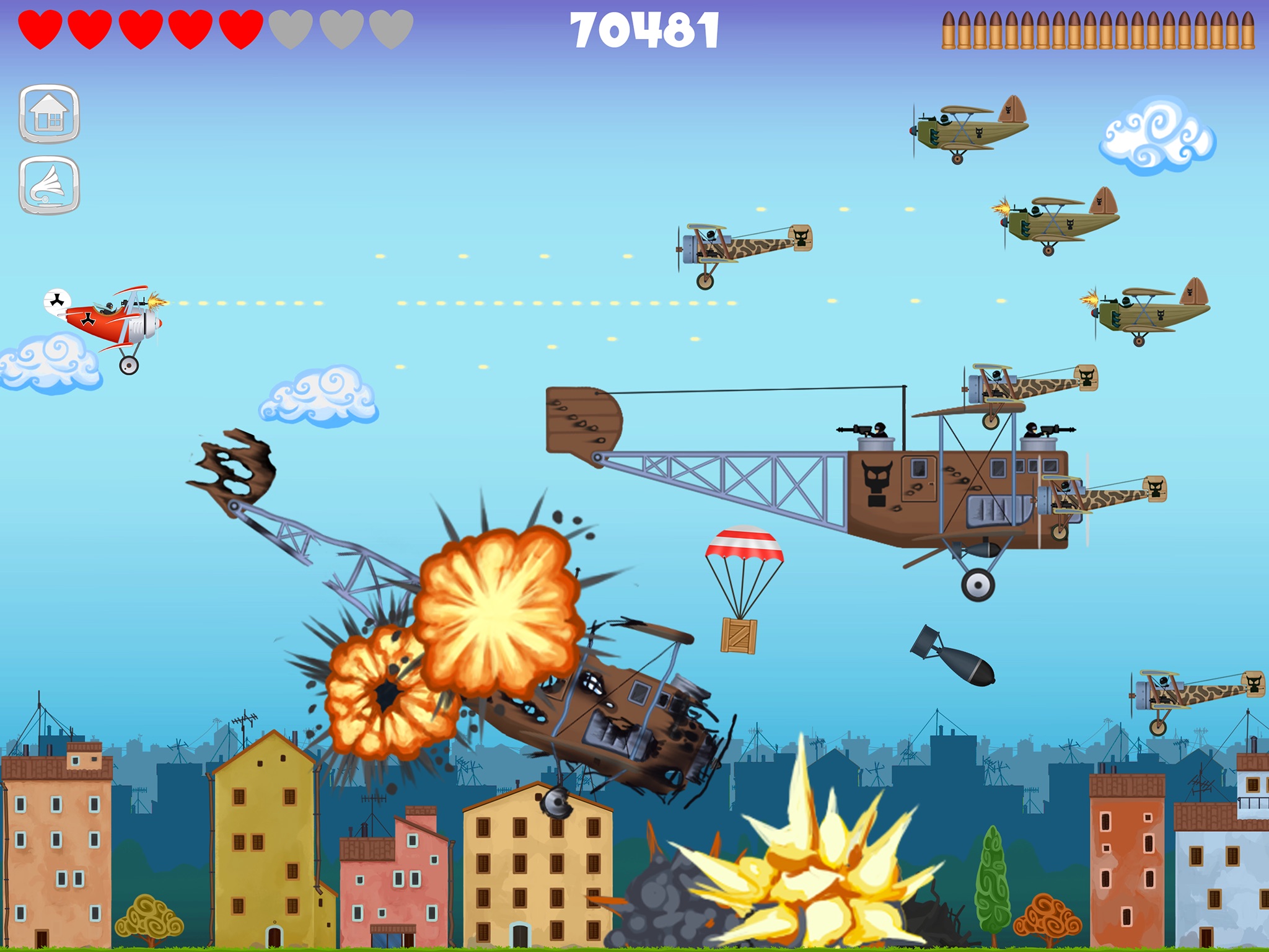 The main character is Red Baron, a pilot of a triplane, who is fighting off hordes of enemies