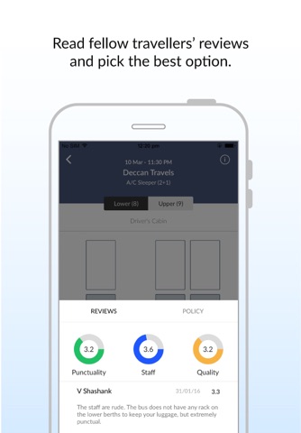 Reviews on Mouthshut reveal that this company regularly double-books tickets and customers are left stranded at the time of travel. Not only do they not make alternate travel arrangements for them, they dont even refund them! This almost happened to me, luckily I had requested COD. Also, they falsely advertise discounts on the app that never apply and when I inquired about it on Facebook, they deleted my post! Twice. And their phone support hung up on me. Dodgy, scamming company.
