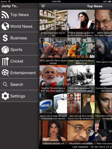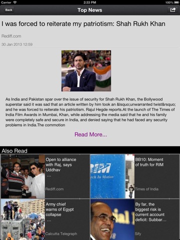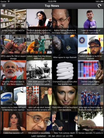 Instead of having thumbnails pics of news, vertical scroll could be more efficient. Font is small. I like TOI better.