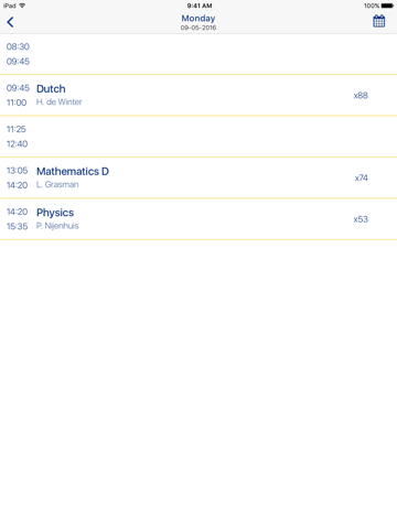 Quickly check your timetable by pressing the next lesson in the main screen of the app. Or if you just want to see what your next lesson is, you can see that immediately in the main screen or in the useful Today-widget in your notification center.