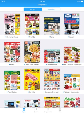 - Select your favourite stores like Walmart Canada, No Frills, Staples, Super C, and Canadian Tire to quickly access flyers in one place