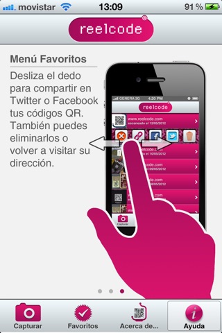 La app de ReelCode es un lector de códigos QR portátil para el iPhone y iPod Touch. Con esta app podrás escanear los códigos de ReelCode y acceder a la web directamente. Donde podrás encontrar videos y contenidos exclusivos.