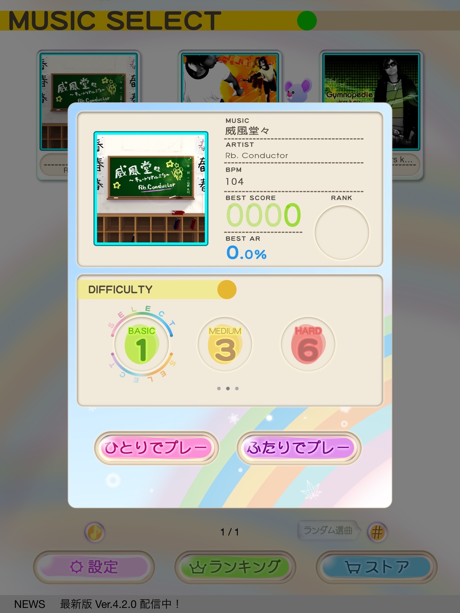 個人的な問題なんでしょうが、同時押しの際に一時停止する事があるので一時停止の仕方を変更してほしいのとスペシャル譜面を実装してほしいです。この2点が改善されれば個人的には文句無しです。